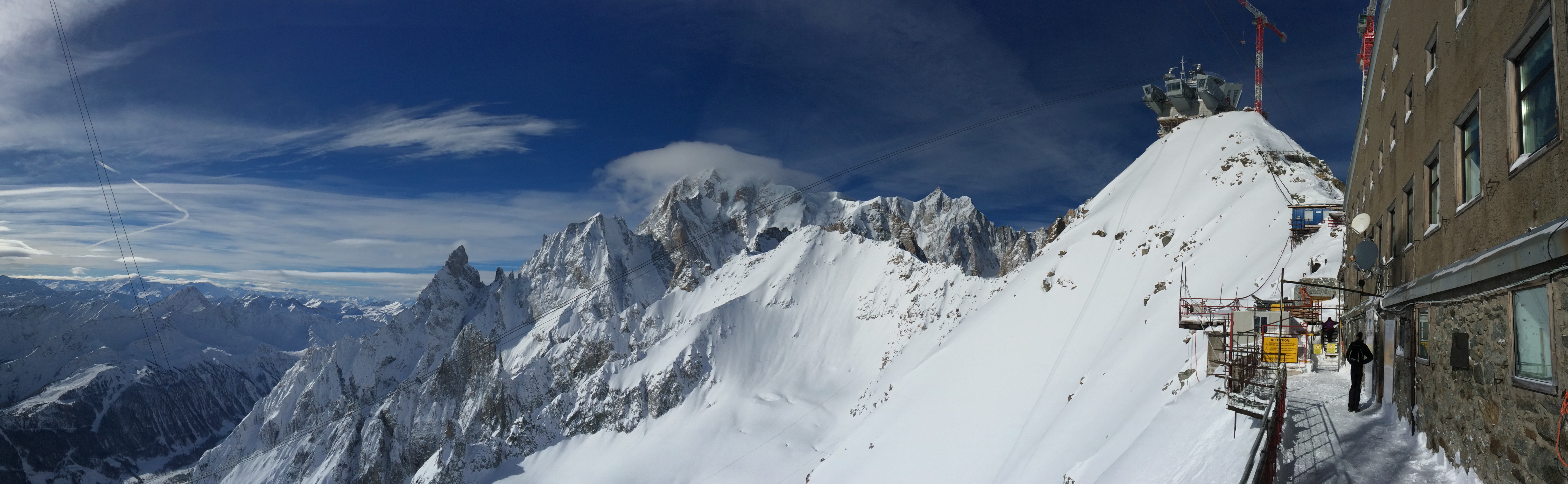 We had a quick cappuccino before going in line to get up the as close as you can to Mont Blanc, without climbing the mountain itself. Since this was a “side trip” not planned ahead. I went up in my “street” clothes. Leather jacket, but no hat nor gloves. Let me tell you it was cold when you got to the top. That day a strong wind was blowing adding to the below freezing temperatures.